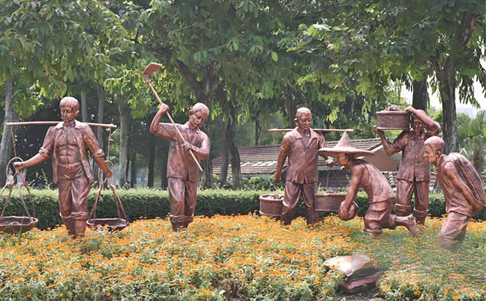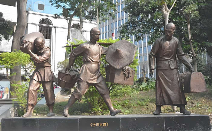 通過(guò)多人物組合再現(xiàn)市井畫(huà)卷,如《老長(zhǎng)沙》系列的補(bǔ)鍋匠與圍觀群眾9,讓游客沉浸式感受城市歷史。